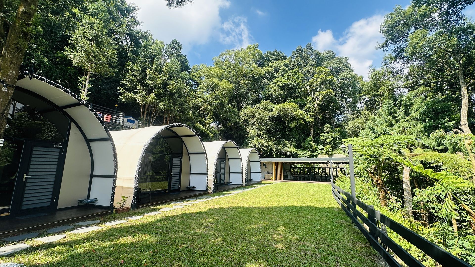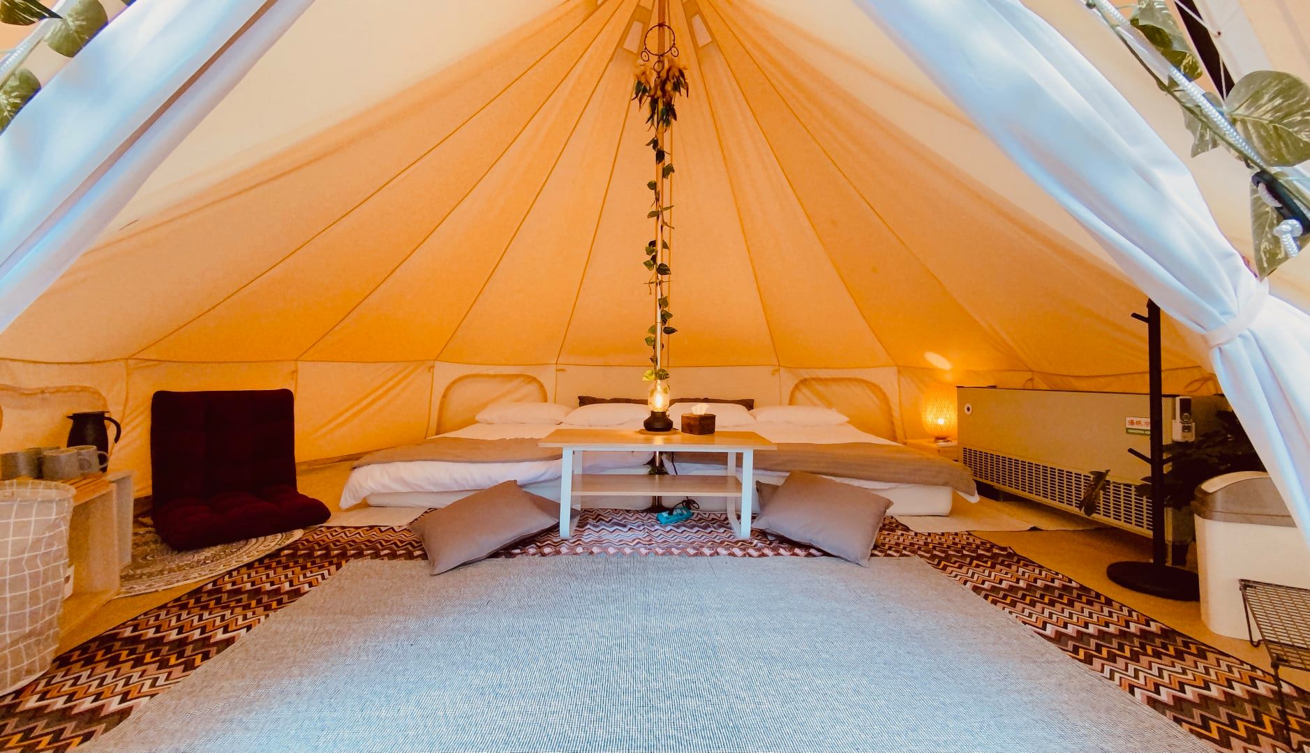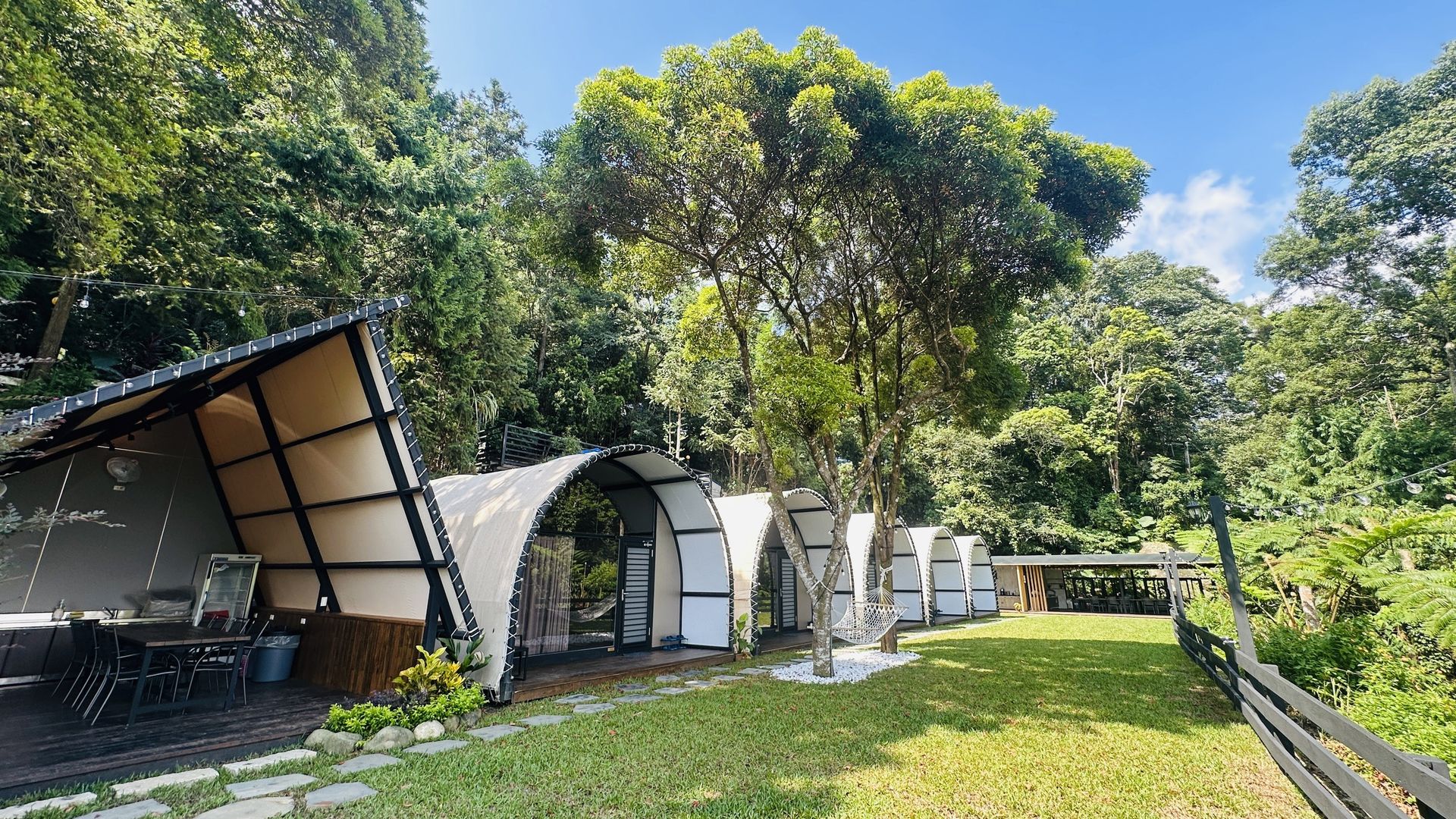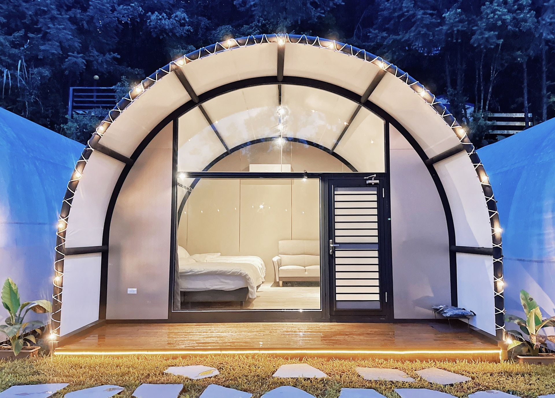 融合了帳篷與杉木屋的元素,同時擁有兩種不同體驗。